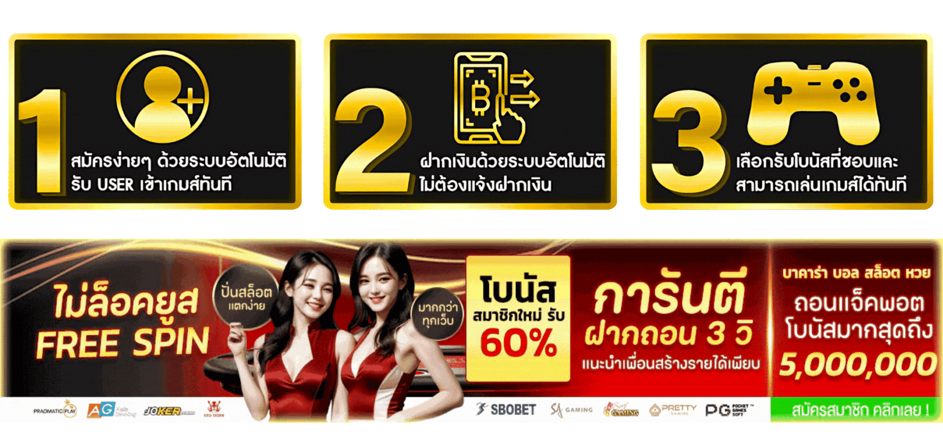 ระบบของเราทำงานตลอด 24 ชั่วโมง รองรับทุกธนาคารชั้นนำในประเทศไทย ไม่ว่าจะเป็น กสิกรไทย ไทยพาณิชย์ กรุงเทพ กรุงไทย หรือธนาคารอื่นๆ นอกจากนี้ยังรองรับการโอนผ่าน True Money Wallet เพื่อความสะดวกสูงสุดของสมาชิก การฝากเงินเริ่มต้นเพียง 100 บาท และถอนขั้นต่ำเพียง 300 บาท โดยไม่มีค่าธรรมเนียมใดๆ ทั้งสิ้น