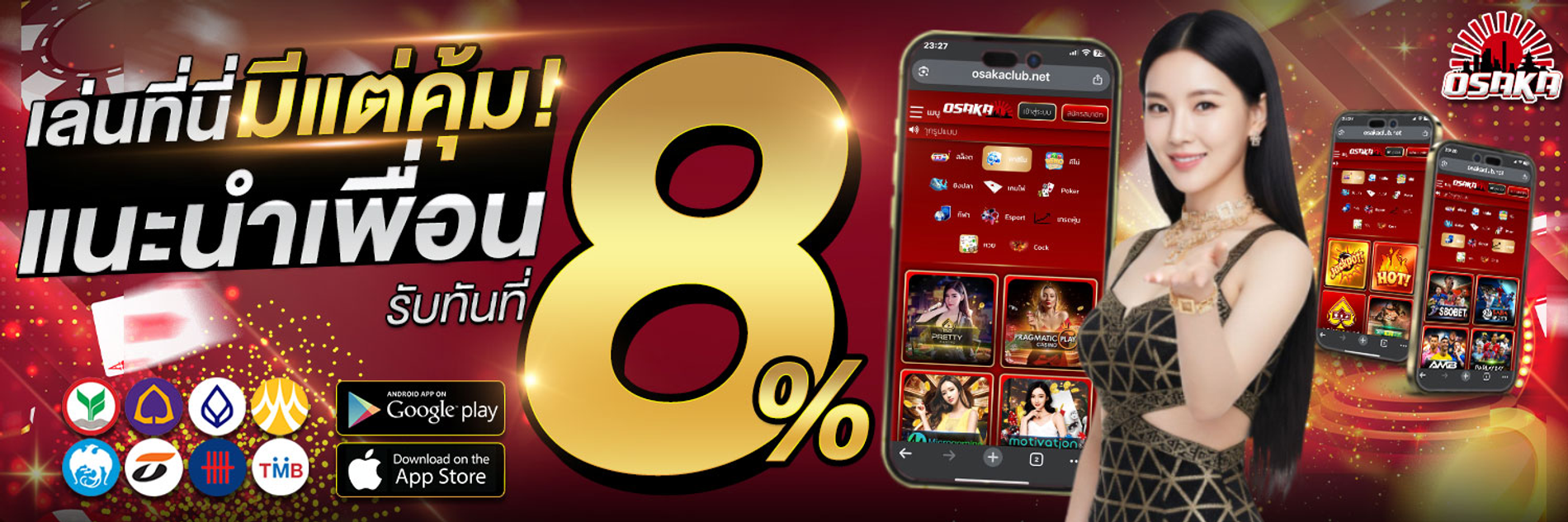 สำหรับนักพนันที่ชอบชวนเพื่อน Osaka มีระบบแนะนำเพื่อนที่ให้ค่าคอมมิชชั่นสูงถึง 0.5% จากยอดเล่นของเพื่อนตลอดชีพ ยิ่งชวนมาก ยิ่งได้มาก ไม่มีขั้นต่ำในการถอน